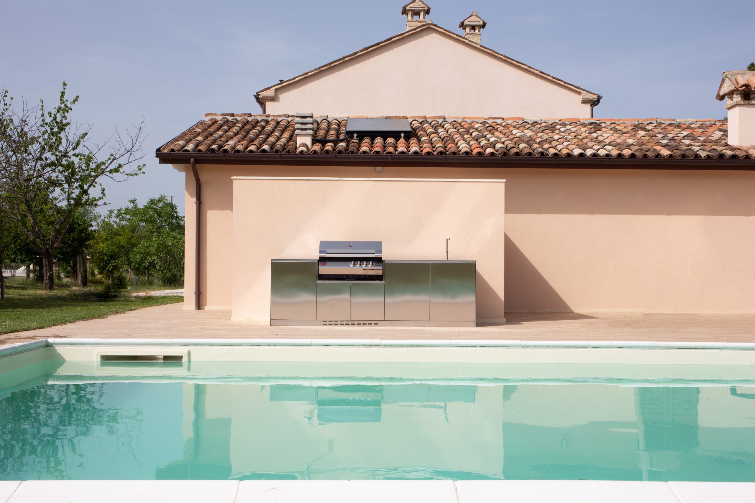 A JMQ conta com o profundo conhecimento da Officine Fanesi na produção de cozinhas personalizadas em aço inoxidável 304 ou 316, para estender as fronteiras da casa com projetos que tornam o exterior mais confortável e prazeroso.